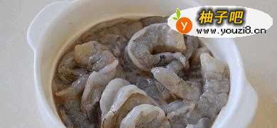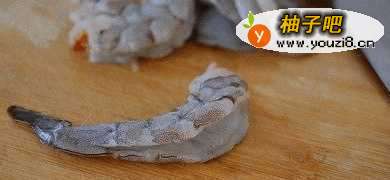 大虾洗净去头去壳,背部中间用刀划开,去除虾线。