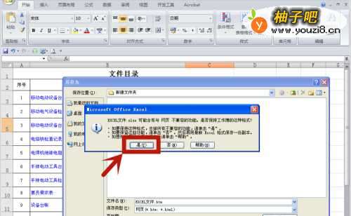 3Excel转为网页形式时,系统会提示有些不兼容,在以下对话框中选择“是”。