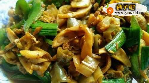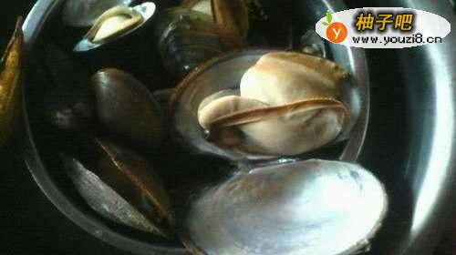 7爆香后快速放入河蚌肉,放塑汽入适量黄酒,老抽,一小勺盐快速翻炒。