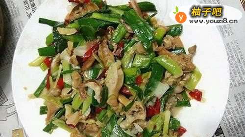 8最后将青椒和青蒜一起下锅倒入少许鸡精、一小勺的盐即可出锅!时昆珠间别太久了,肉会容易老。