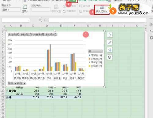 4选择【图表】,点击菜单栏的【分析】—【插入切片器】;