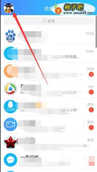 首先,打开手机QQ应用,登录自己的QQ账号后显示近期的QQ聊天记录,点击左上角的头像或者屏幕向右滑动。