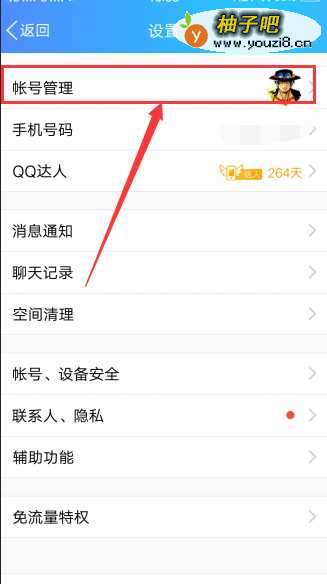 3打开QQ设置功能,直接点击最上方的头耻贪像栏,如下图所示。