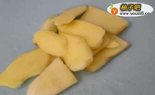 2将姜切片,这里姜要准备多一点,才够入味,然后把沥干水的鸡翅各划几刀,比较好入味