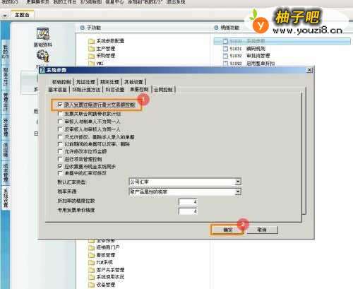 3在单据控制界面,勾选【录入发票过程进行最大交易额控制】,点击【确定】。