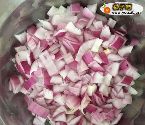 2再把紫洋葱切成小块,如下图。
