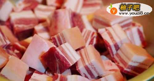 五花肉切块儿,凉水浸泡2-3小时后,用清水把血水洗干净备用