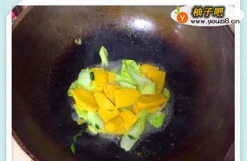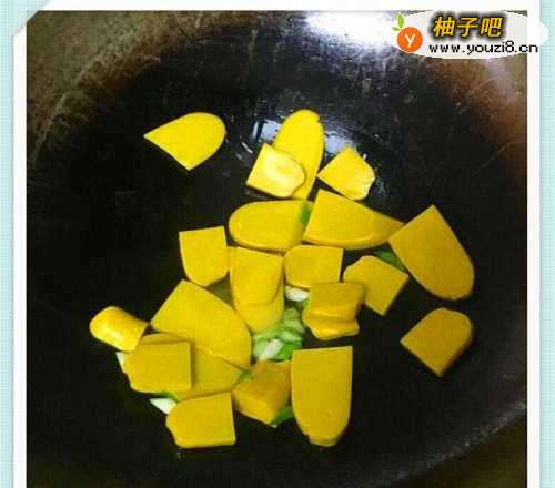 4黄元米果放入锅中翻炒