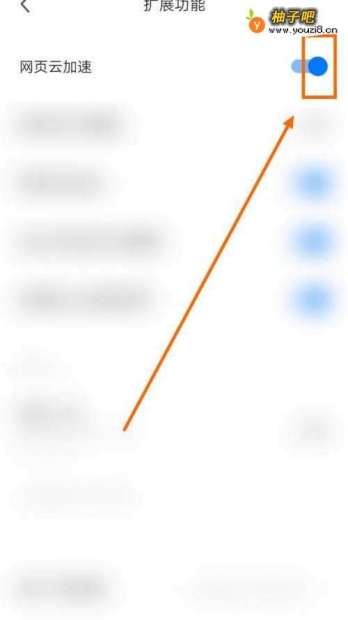 1.打开“川流”。2.点击“展开符”。3.点击“设置”。4.点击“通用”。5.点击“扩展功能”。6.点击“网页云加速”。7.当“网页云加速”的按钮圆点的颜色为蓝色的时候,问题就得到解决了。