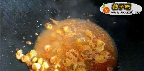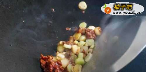 4倒入香蒜头与豆瓣酱