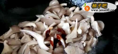 3放入蘑菇翻炒。