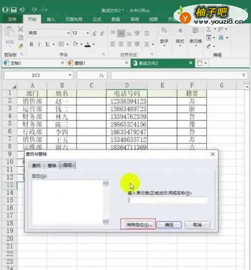2在【查找与替换】的页面中,选择【定位】按钮,然后用鼠标点击【特殊定位】按钮,如图所示:
