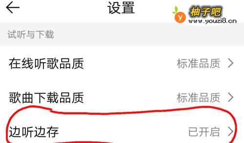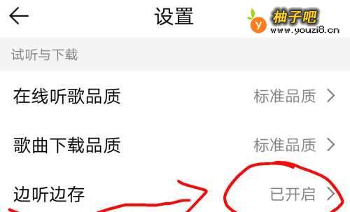 4第四步:在设置里面找到“边听边存"如下图所示。