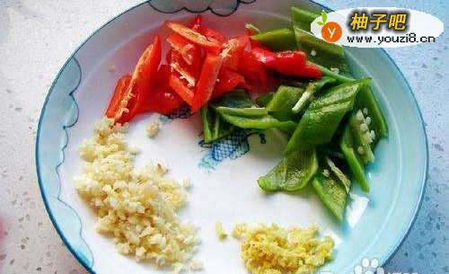 3将姜蒜切末,青红辣椒切断