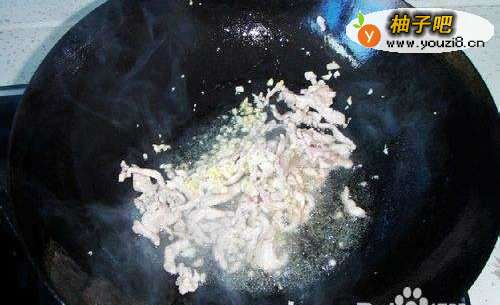 9锅内放少许油,放入肉丝翻炒
