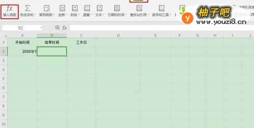 3选择单元格【C2】,点击菜单栏的【公式】—【插入函数】;