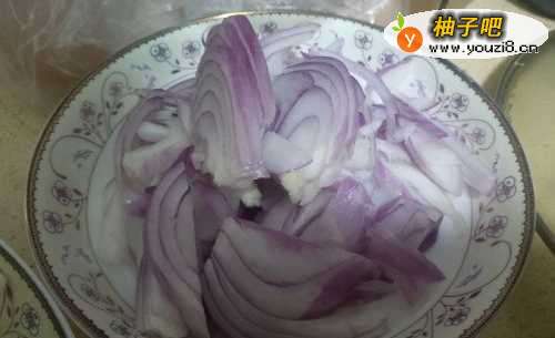 洋葱洗干净切成小条状!