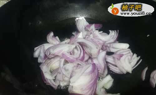 3起锅烧油,加入洋葱进行翻炒,炒出香味。