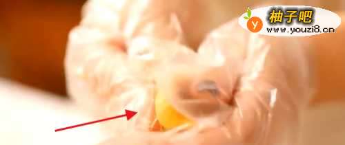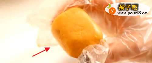 4取小团,压扁包入芝士片