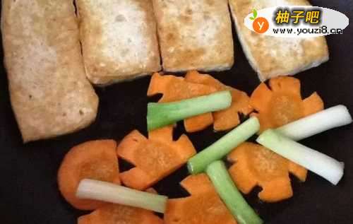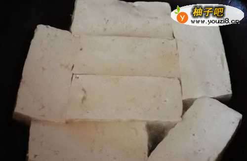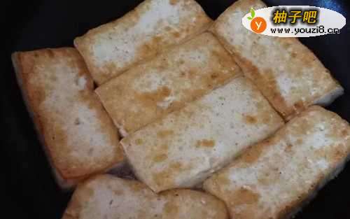 55、将豆腐两面煎至金黄。