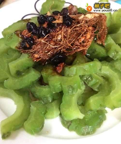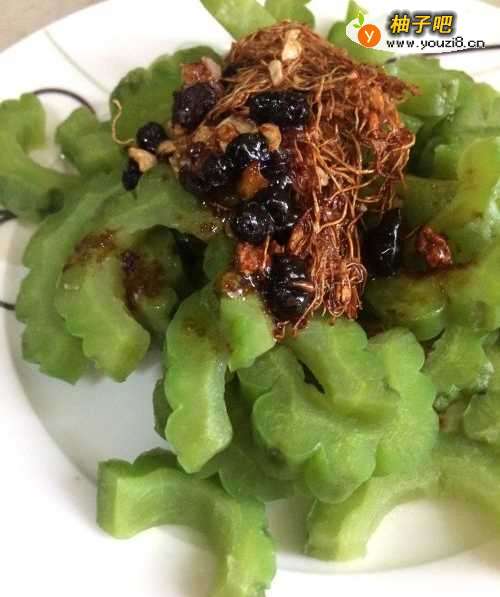 7炸出香味后,趁热把油浇在煮好的苦瓜上,搅拌均匀就可以开吃了。