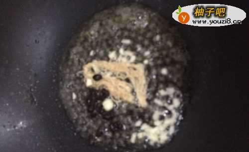 6热锅下油,油热后依次放入大蒜,豆豉、冰糖炸出香味;