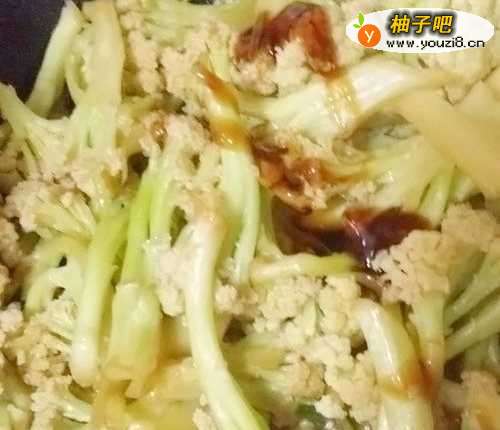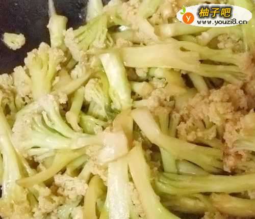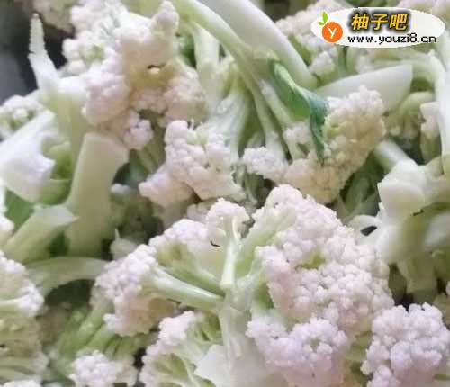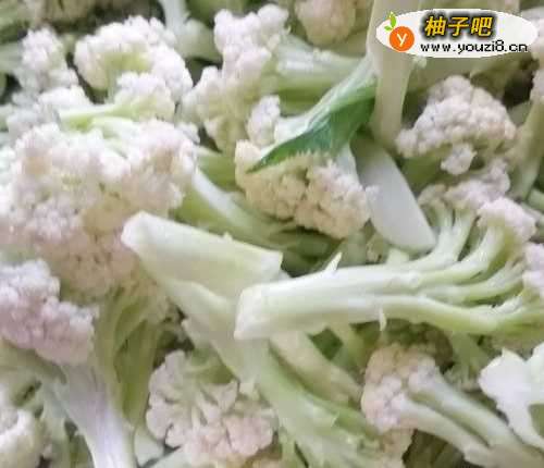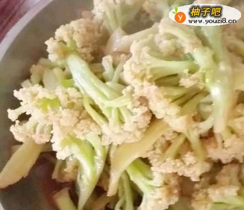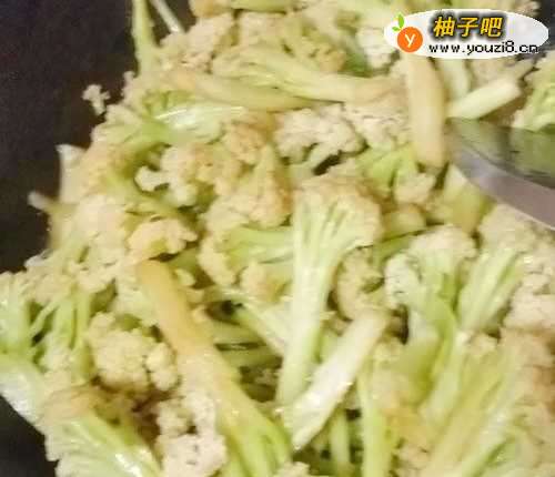5然后放入花菜,翻炒