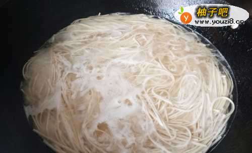 9锅中水烧开,放入面条煮熟,捞出。