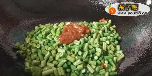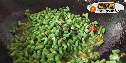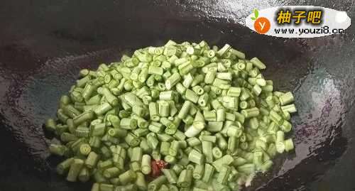 3放入豆角翻炒。