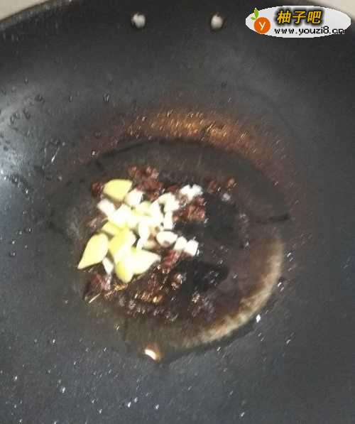 6热锅,倒入油,然后放入花椒,八角,蒜头,姜,爆香。
