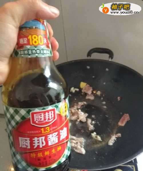 8然后倒入酱油,翻炒均匀。