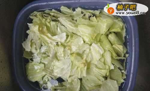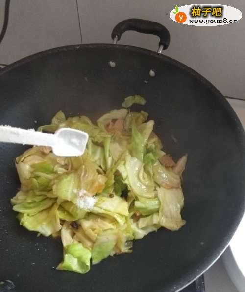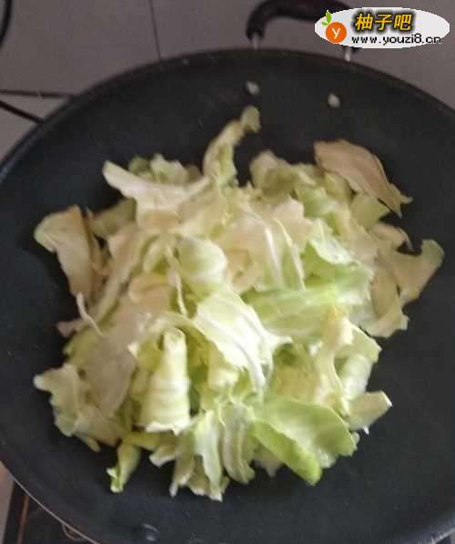 9然后倒入包菜,翻炒均匀。