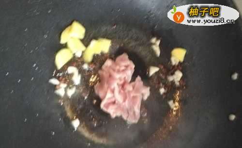 7然后倒入肉,翻炒均匀。