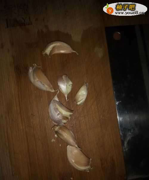把蒜包去掉皮,然后拍碎。