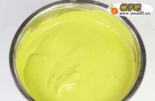 4打发好的蛋清分二次与菠菜糊拌匀。
