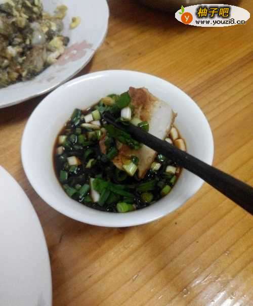 8将要好的葱花,加入适量的生抽,用来蘸着吃