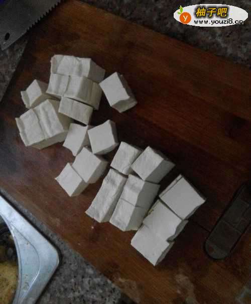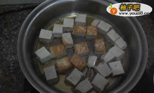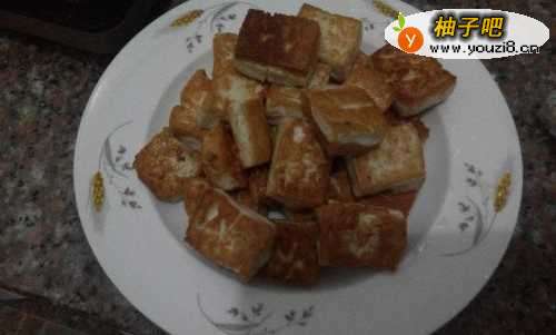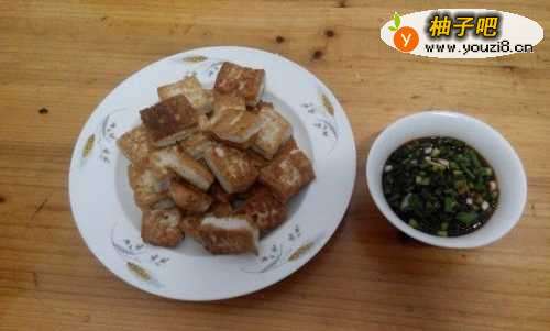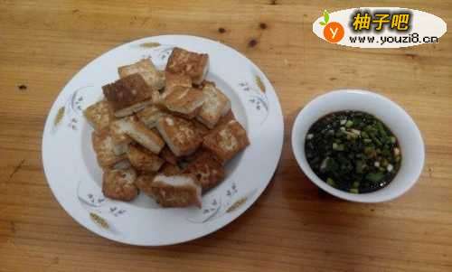 煎豆干,也是家乡的一款地道小吃,将豆腐两面煎黄,搭配上生抽、葱花,蘸着一起吃,味道特别,每回吃到时候,总有一种回到儿时的感觉。