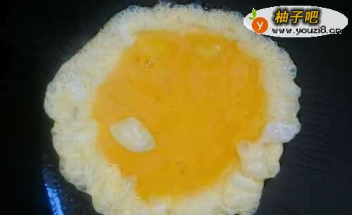 4热锅倒油,倒入蛋液,待蛋液快要凝固时划散,然后盛出放在碗中备用。
