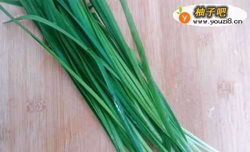 1:韭菜择去老叶,冲洗干净后,切成长段。