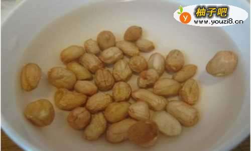 5时间到后将花生捞起来,放在盘子里备用!