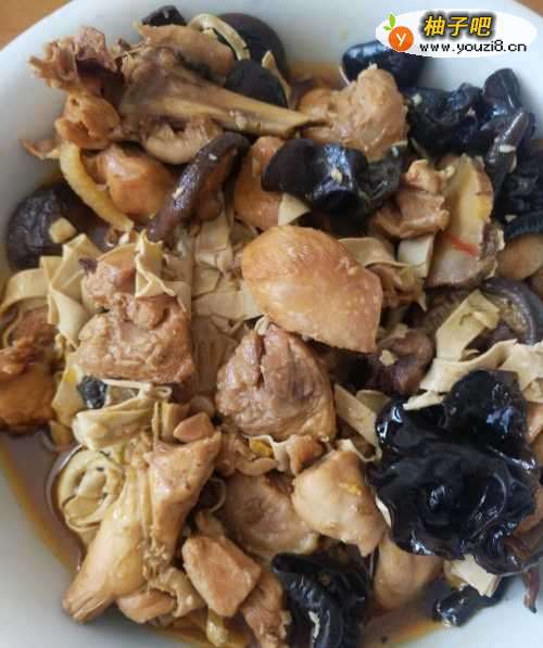 6焖煮的过程中香味四溢,真是令人食指大动。半小时过去,可以试一下咸淡,根据个人口味增减食盐份量。因为我们家做菜是不加味精鸡精的,大家有需要的也可以加一些鸡精调味会更鲜香。家常口味的黄焖鸡就做好了,出锅装盘,口味一点不比店里的差哦,有兴趣的朋友们试着做做看吧。
