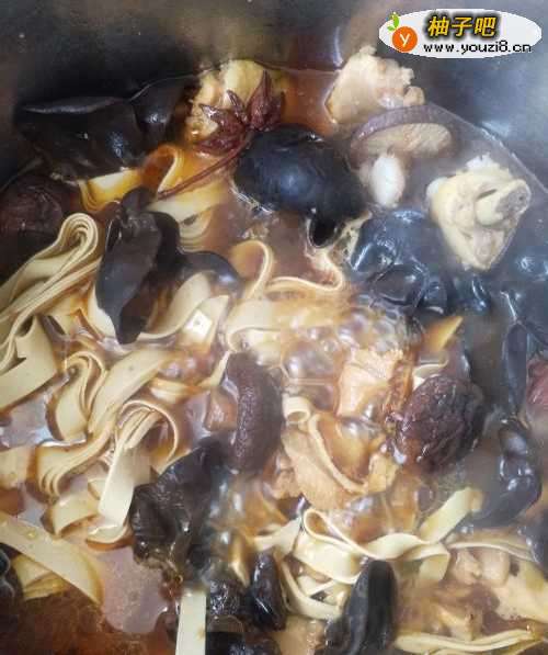 5锅开以后,先加入香菇、黑木耳、百页等这些可以略煮久点的食材,这时候可以多焖煮一会儿比较入味好吃,大概半小时左右。一些不宜久煮的食材可以快要出锅时加入,比如粉丝、粉皮等等。