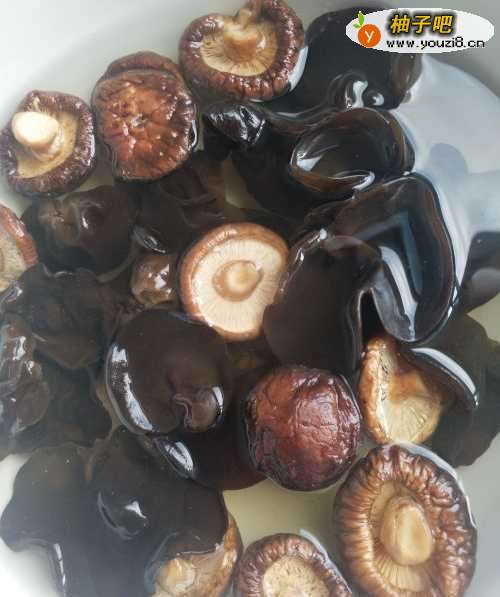 首先买了四个鸡大腿,把鸡腿切成小块。黑木耳和干香菇泡水,葱姜蒜切末备用。