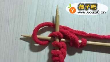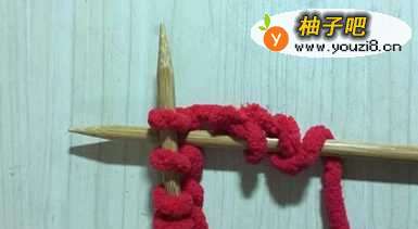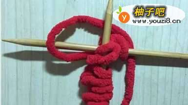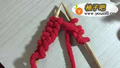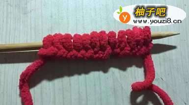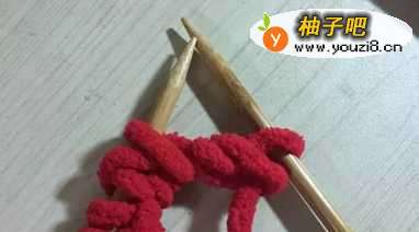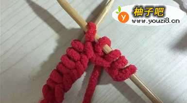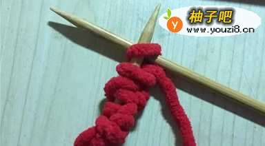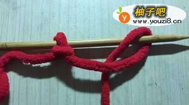 (1)将毛线在织棒上绕出很多个针结;