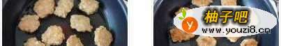 6锅内倒少许油, 把肉末捏成团放入锅内慢煎