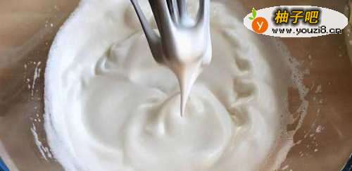 3往蛋清碗里加几良爷称滴白醋去腥,用打蛋器先低速打发至起泡泡,然把白糖全部加进来,高速打发,蛋清变得越来越浓稠,继续打发至蛋清起纹路,拎起打蛋器有弯弯的小尖角即可。