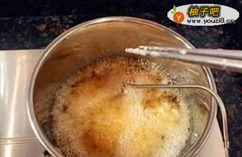 5锅里倒入花生油烧至6成热,把肉块放入炸约3分钟,转小火再炸2分钟后捞起。