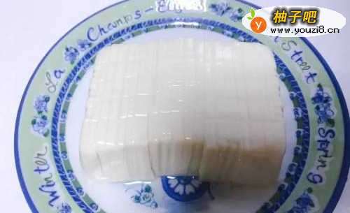 豆腐用温的饮用水洗净后切成薄片