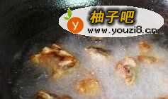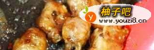 6放入炸好的排骨,中火加热,不断翻炒,使糖酱均匀的裹在排骨上