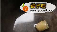 4将油盛起,锅中放入1汤勺水(15ml),放入小块冰糖,大小见图,差不多大小的就行,小火慢慢加热